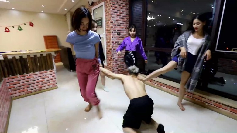 【内容简介】:芷晴、黑冰、瑞琪、夏芙四人在打麻将,男m躺在地上当脚垫。打了两圈,众人不爽,于是拿男m撒气,狂踢,踢得一下下非常响,想着各种法子折磨他,非常狠,摄影师看着都揪心。尤其是黑冰,果然名不虚传。