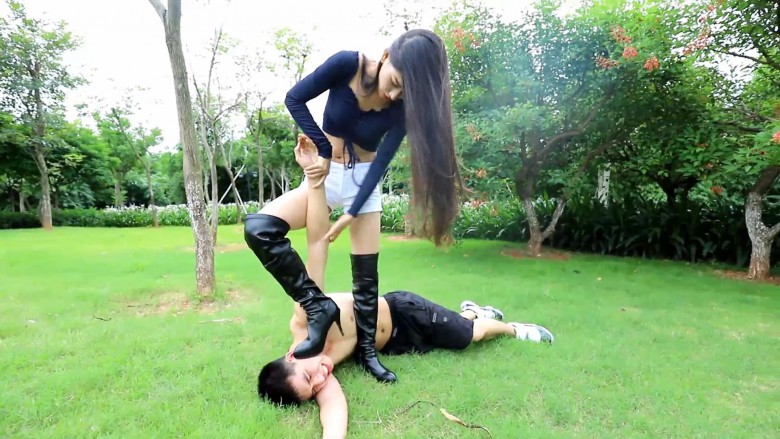 【内容简介】:大热天时跑到公园里拍视频,还穿着长靴,也不知道当时怎么想的。男m光着身子被踢,有人经过还差点去抱JC蜀黍去了,哈哈哈。这部是芷晴各种动作踢男m,可惜的是这个m不是很能抗,没一个能打的...
