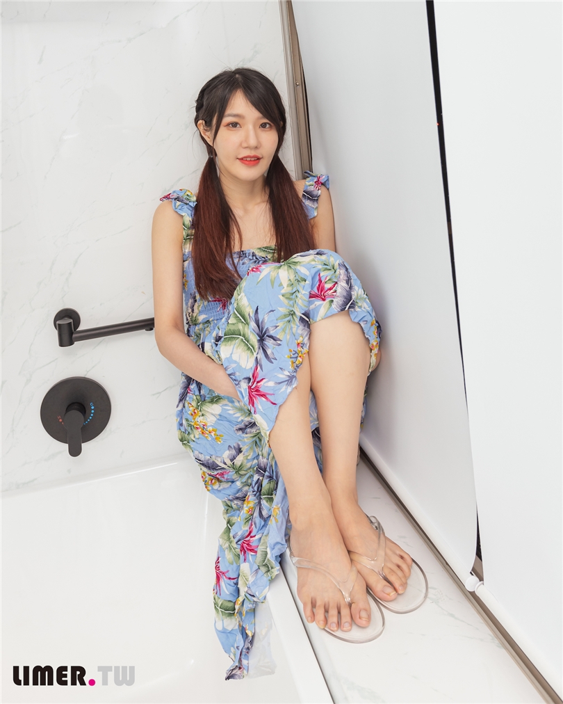 洗澡前 apple 用腳趾玩弄著透明夾腳拖