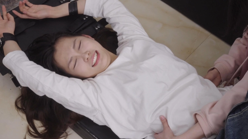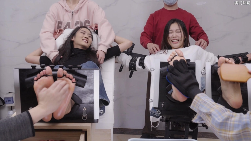 两姐妹一起来的,一个180一个178的身高,脚码都是40,都很怕痒,节目效果拉满了,两个都是刚毕业没多久,这个模特皮肤很滑很白。