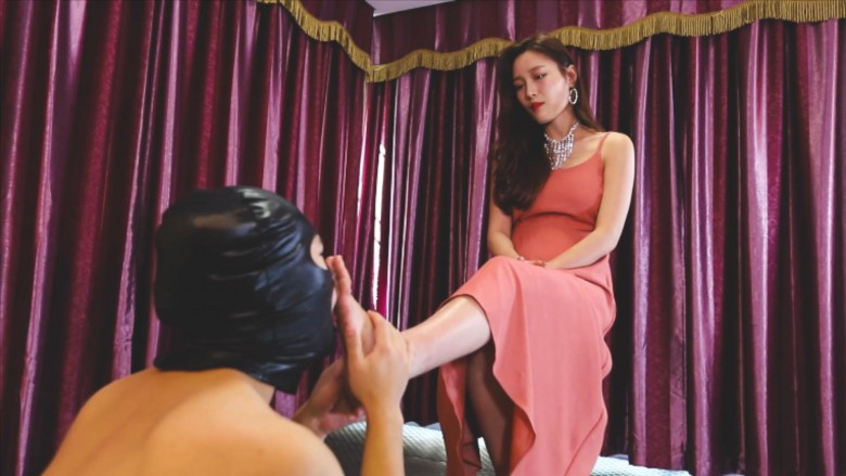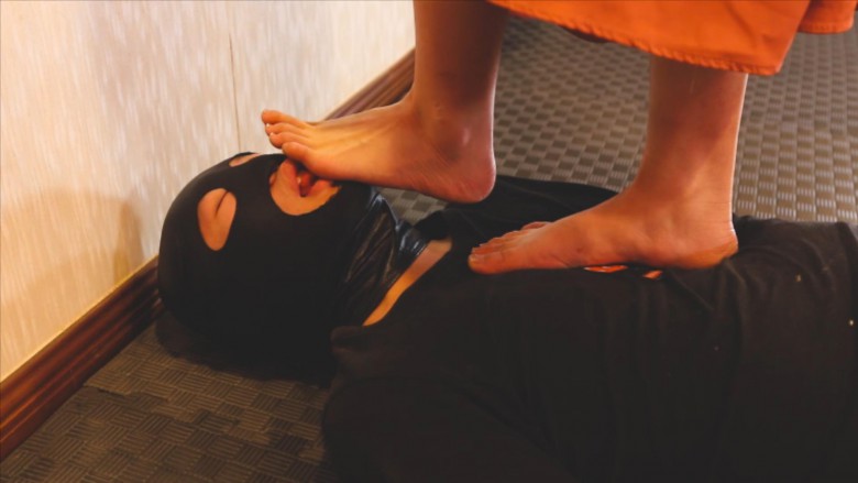 狗奴进门跪拜,踩踏、踩脸、踩裆。然后让狗奴侍奉自己的美足,舔舐、插嘴,还有鞭打