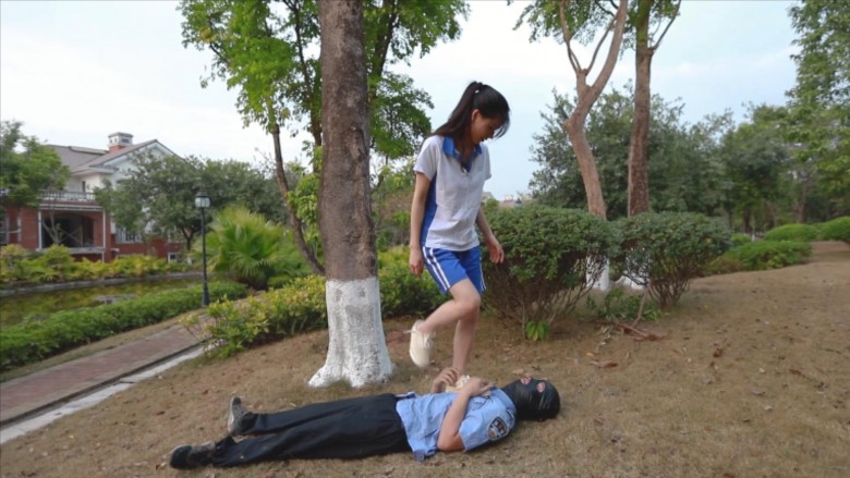 本主题需向作者支付 31 商户币 才能浏览 购买主题 【内容简介】:芷晴扮演的学生小太妹,在校园抽烟,被保安看到了说了一顿。怎料保安碰到了个硬茬。放学后小太妹把保安喊道了公园里,拳脚相向,飞踹、暴踢,还有坐脸、腿绞。这次保安是彻彻底底被制服了。