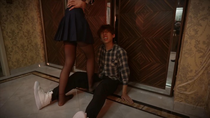 麦可颂终于不耐烦了,敬酒不吃吃罚酒!于是将他腿咚在墙下,并用膝盖顶裆部、高跟鞋碾踩裆部。接着麦可颂又将他拖到酒吧角落,暴力地踢裆、踩裆.......不知过去多久了,小奶狗也奄奄一息了,麦可颂让他从自己胯下来回地钻过去,羞辱着他...
