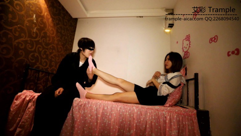 奈奈跪在真希的面前 大口的舔着真希的脚 真希违心的说着一些暧昧的话
