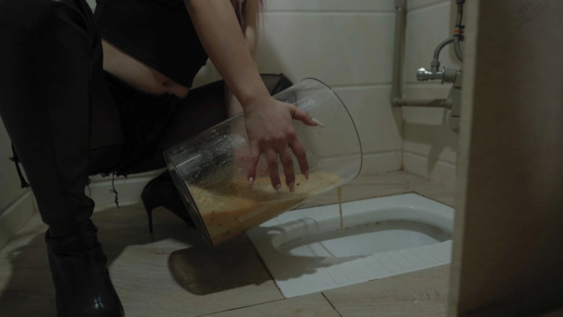 上次醉酒把菠萝塔整挺惨的,我也挺惨的拖地拖了半小时。这次又把她忽悠过来拍养乐多挑战,先让她吃饱饭,然后让她继续撑下20瓶养乐多。大概喝了十三四瓶,她就忍不住喷了一口养乐多出来。然后让她继续撑。然后突然她喷了一大口,声音很大的超大的一口,甚至都从鼻子里喷出来了。然后连着自然吐了几次,她进行扣吐。前前后后一共吐了十几分钟,吐了半桶,沉甸甸的感觉有十斤重甚至比凌凌吐的还多。最后让她把自己的呕吐物倒进厕所,恶心的她差点又吐了出来。最后看到她扁下去的肚子,才允许她下班。